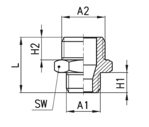 Sechskantnippel zum Anschließen von zwei Gewinderohren oder -beschlägen und der Ausdehnung der Rohrlänge, sechseckiger mittlerer Abschnitt zum Anziehen mit einem Schraubenschlüssel.