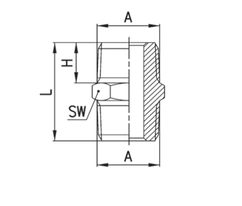 "Sechskantnippel zum Anschließen von zwei Gewinderohren oder -beschlägen und der Ausdehnung der Rohrlänge, sechseckiger mittlerer Abschnitt zum Anziehen mit einem Schraubenschlüssel.